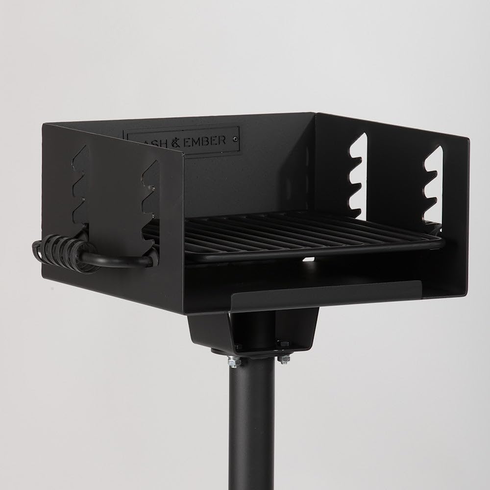 Ash & Ember Park-Style Grill, 256 Sq. In Charcoal Grill, 16.5x16x8, Single Post Outdoor Cooking Grill for Backyard BBQ, Camp Grilling Barbecues, Small-Sized Parties, Grill Delicious Meats, Vegetables