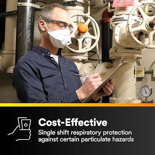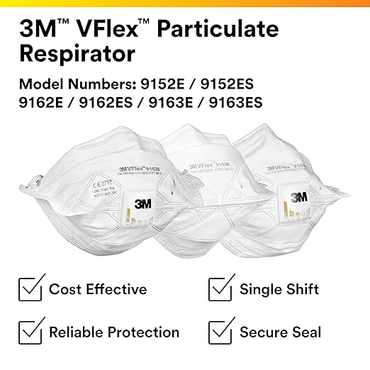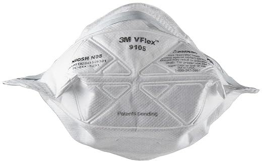 3M N95 Disposable Respirator, VFlex Particulate Respirator 9105, Pack of 50, Standard Size, NIOSH Approved, For Sweeping, Sanding, Grinding, Sawing, Bagging, Dust