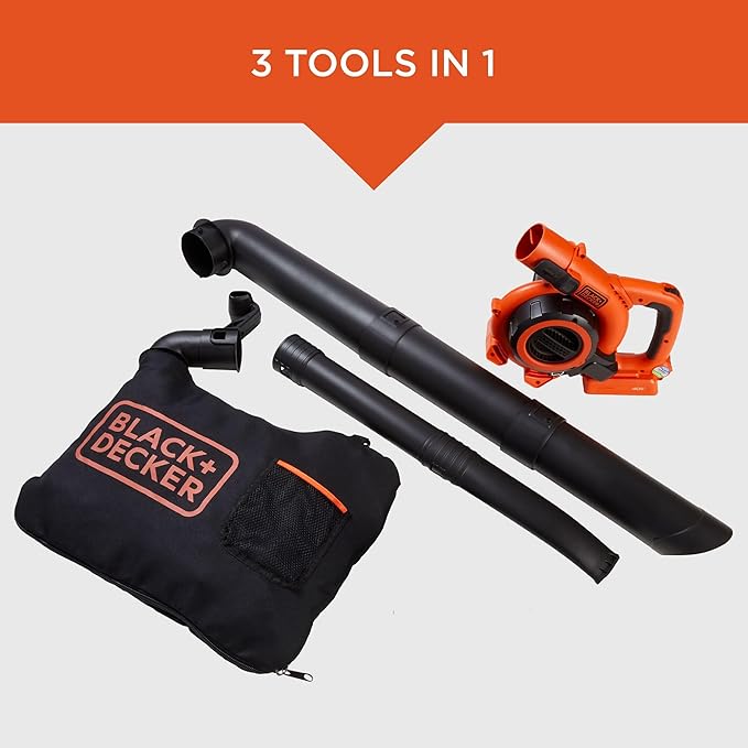 BLACK+DECKER Leaf Blower Cordless Leaf Vacuum and Mulcher Combo Kit, Battery and Charger Included, 40V 120 mph Air Speed, 6-Speed Dial, Built-in Scraper with Collection Bag (LSWV36)