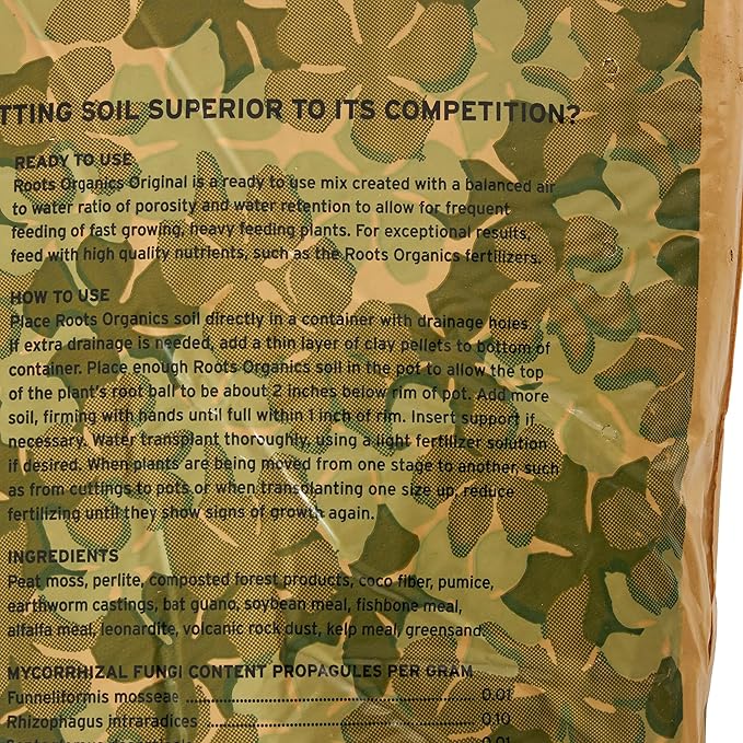 - 5.6 GALLON POTTING SOIL: 5.6 gallons (0.75 cu Ft) of Roots Organics Coco-Fiber Original Potting Soil for your hungry plants