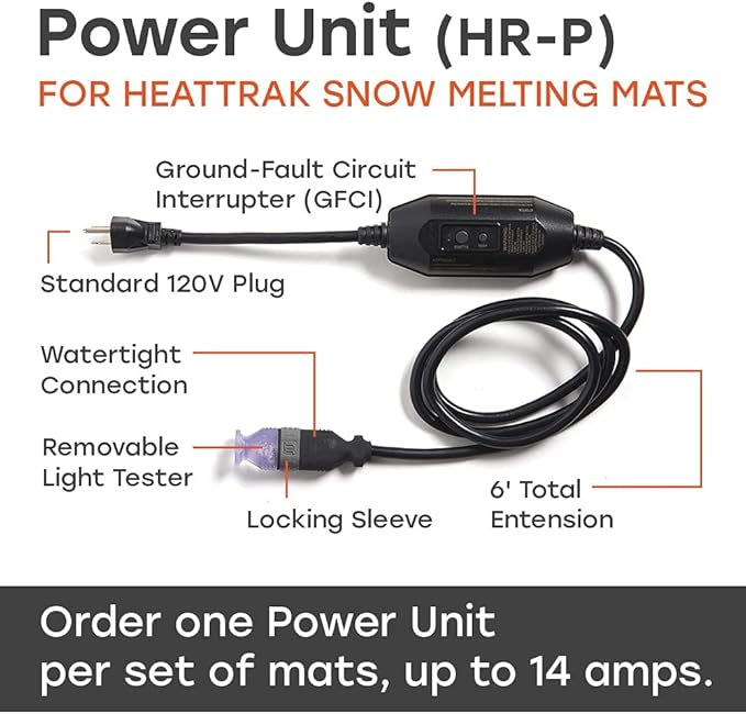 - Simple Controls: One outdoor-safe HeatTrak Power Unit (SOLD SEPARATELY) allows you to safely connect a configuration of stair and walkway mats up to 13 amps.