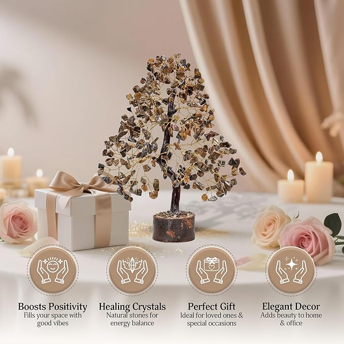 FASHIONZAADI Tiger Eye Crystal Tree, Reiki Gifts - Gemstone Tree - Spiritual Crystal Chakra Decor - Gifts for Women