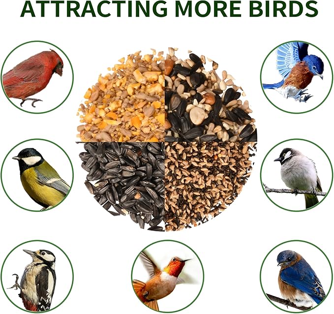 - Smart Design: This squirrel-proof bird feeder features weatherproof construction with reinforced roof and chew-resistant sidewalls, paired with a ventilated seed tray that combats moisture—ensuring durable performance as reliable outdoor hanging bird feeders for year-round backyard enjoyment.
