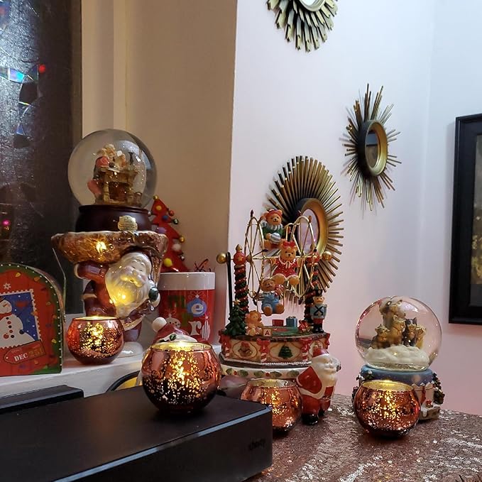 - MERCURY GLASS VOTIVES--Antiqued Metallic Finish: Mercury speckled effect on the tealight holder will enhance the natural warm light of candles, giving it a vintage but timeless look. Use these pretty rose gold mercury glass votives as part of your overall decor, or as a favour for your guests.