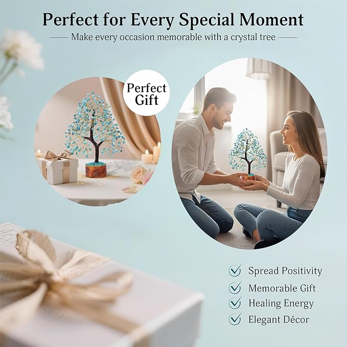 FASHIONZAADI Turquoise Crystal Tree of Life, Feng Shui Decor, Chakra Gem Tree, Crystal Positive Energy, Spiritual Decor, and Gifts for Women