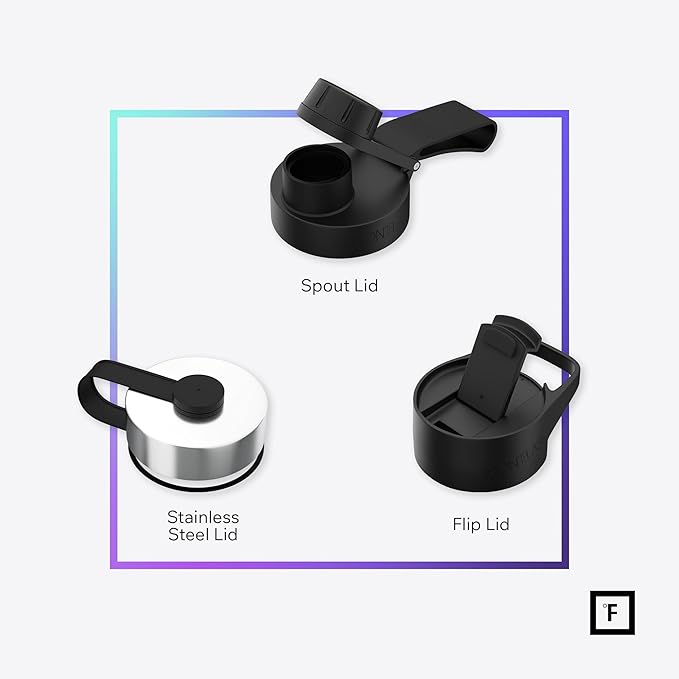 - 3 LIDS: YES, Iron Flask comes with THREE different LEAKPROOF lids. Spout Lid, Flip Lid with a Handle, and a Stainless Steel Lid! *NOTE: The stainless steel lid is plastic from inside and stainless steel from outside*