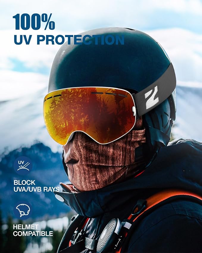- Top Clarity View: Panoramic designed ski goggles with optimized anti-fog & UV protection treatment for crystal and wide view when skiing and snowboarding.