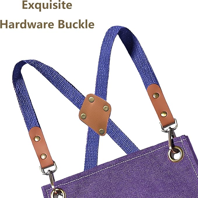 - Apron handcrafted from 100% soft cotton, no smell, Exquisite hardware buckle. Pocket corners are reinforced with metal rivets, durable