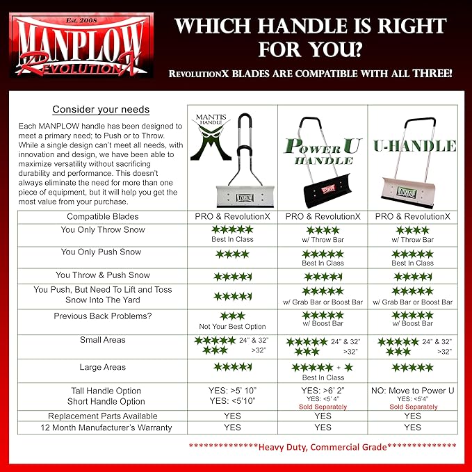 - All MANPLOW U Handles are pre-drilled for the MANPLOW Grab Bar, Throw Bar or Boost Bar. Bar's Sold Separately.