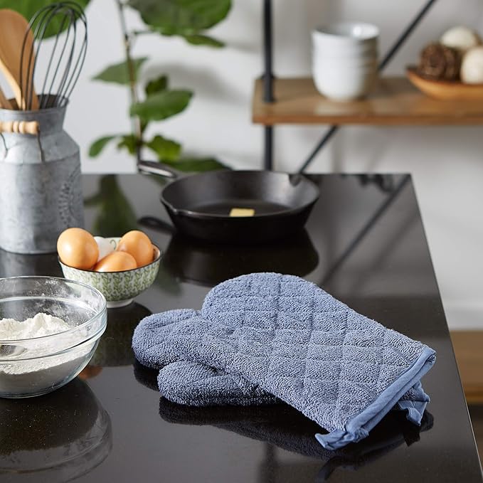 DII Basic Terry Collection 100% Cotton Quilted, Oven Mitt, Stonewash Blue, 2 Piece