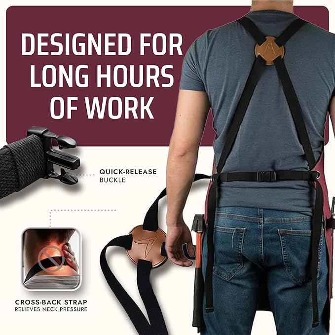 - UNIVERSAL SIZE – The apron measures 27 inches wide x 34 inches tall. It is designed for men and women, between 5’ and 7’ tall. The cross-back straps and quick release buckles are adjustable and fit most sizes between M and XXL.