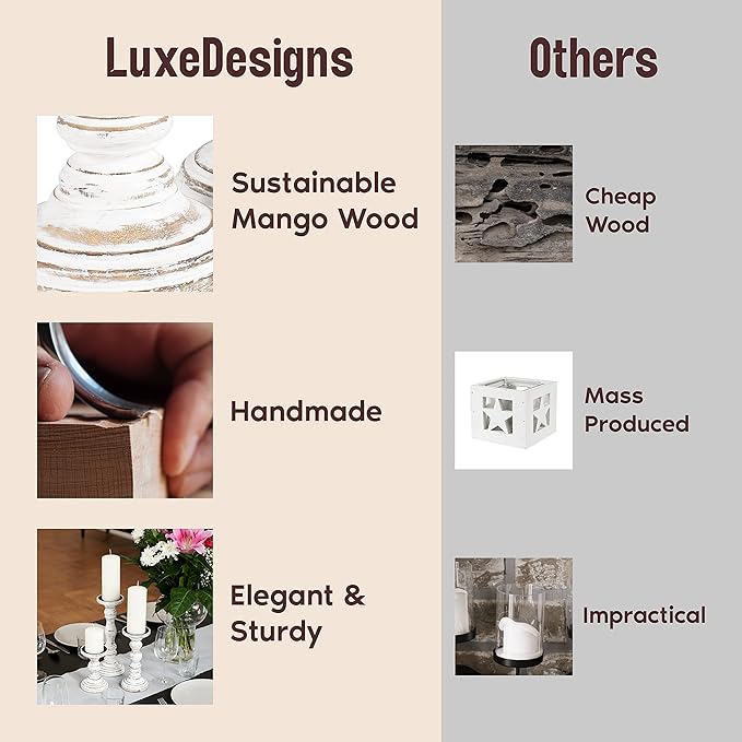 - SHOP THE LUXEDESIGNS RANGE: This candle pillar holder set is one of many stylish and eco-friendly home decor products we sell that support the talented artisans who handcraft these exquisite pieces