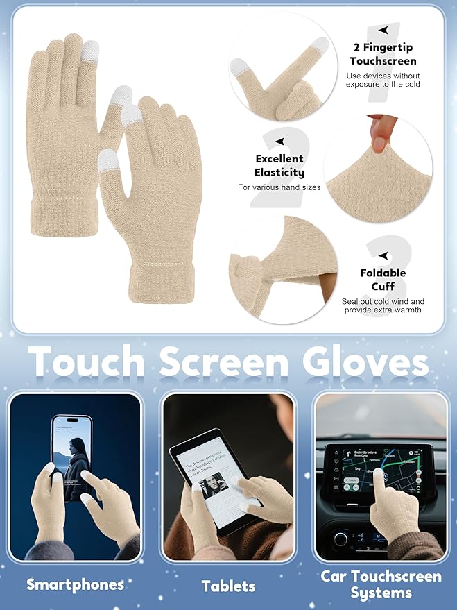 - Applicable to multiple occasions: the women's gloves set is ideal for outdoor activities, such as traveling, skiing, cycling, camping, hiking, running, walking, etc., it can also be used as a Christmas gift, birthday gift or winter gift to your family and friends
