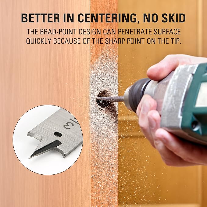 - SET INCLUDES: 11pcs Spade and Brad Point Bits