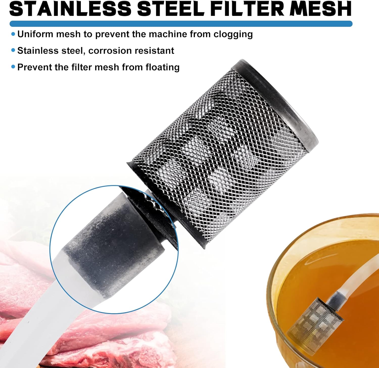 - [Package includes]: 1x Meat injector gun, 1x Food grade silicone tube, 1x host, 1x Filter screen, 10x Needle, 1x Power supply, 1x User manual
