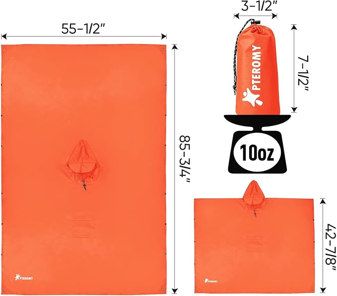 - [VERSATILE APPLICATION] One size fits most. PTEROMY rain ponchos adult is designed breathable and will keep you dry for outdoor activities of any kind such as hiking, camping, picnic, and outdoor game watching. Great gift idea for hunting gear for men, rain gear, or bushcraft gear