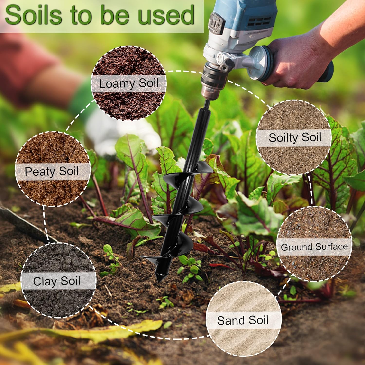 - 【EFFICIENT AND TIME-SAVING】 The garden spiral hole drill planter adapt to dig holes and loosen the soil, it 's more efficient compared with traditional shoves, saving you a lot of time and energy. The auger drill bit for planting can protect your knees and back because you don't have to kneel down or bend over to drill like before, make you work easier.
