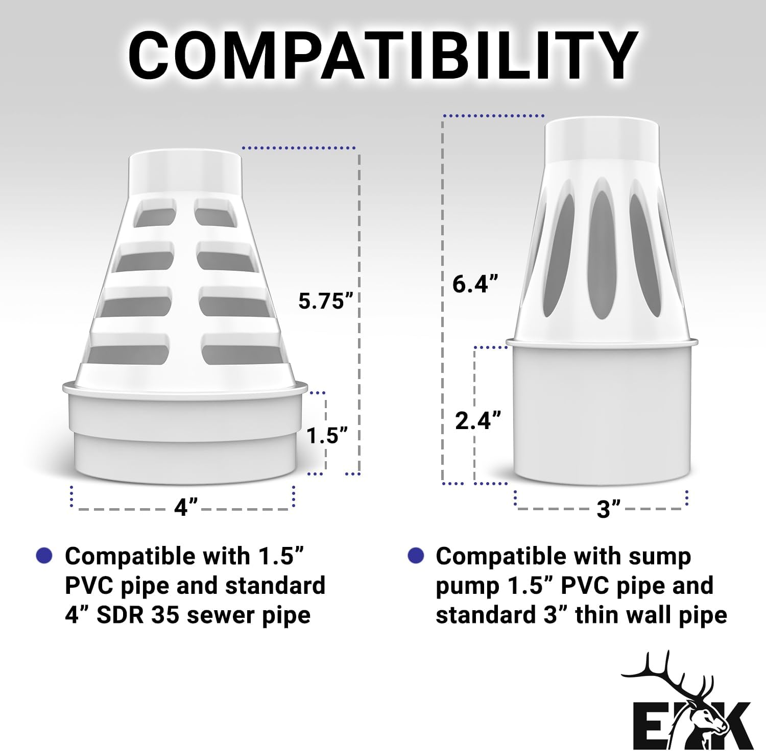 - INSTALLATION: Easily install in-line as the transition between 1.5" sump pump PVC pipe and 4" discharge thin wall SDR 35 pipe.