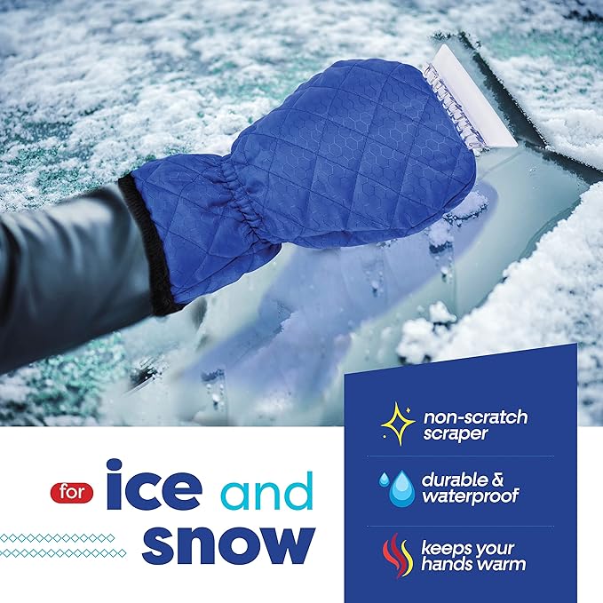 SCRUBIT Ice Scraper with Glove - Car Windshield Scraper for Ice and Snow w/Fleece Mitt - Quickly Scrape and Remove Snow While Staying Warm - Waterproof & Windproof - Car Scraper Snow Brush (Blue)