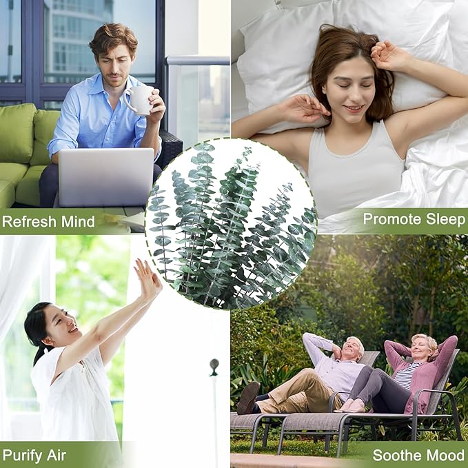 - Fresh Eucalyptus Leaves--This is a special treatment of Eucalyptus sticks, which is kept fresh and completely. The leaves are different from Eucalyptus dried only, get the look and feel of real eucalyptus. These stems remain flexible and keep a similar shape and ease of use that fresh stems have.
