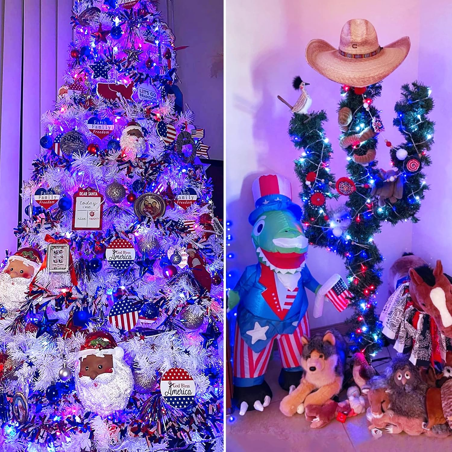 - 【Indoor & Outdoor Patriotic Lights】These patriotic lights are suitable when you decided to completely switch your Christmas tree theme, these lights are working like a champ! When you wrap them around a wreath, Christmas tree, or bush, the clear wire design blends perfectly with the background, fill your home with a patriotic atmosphere. Besides, our patriotic Lights are perfect for decorating gardens, porches, patios, bedrooms, and other places at 4th of July decor.