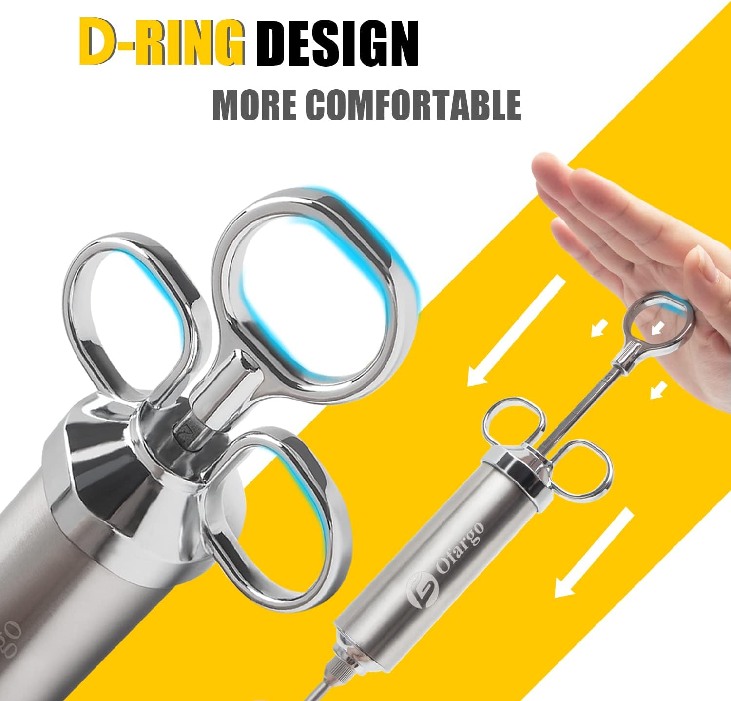 - Ergonomic “D-RING” Design--Ofargo meat injector plunger touch areas adopt “D-RING” design, greatly increase pressure surface, labor-saving and comfortable