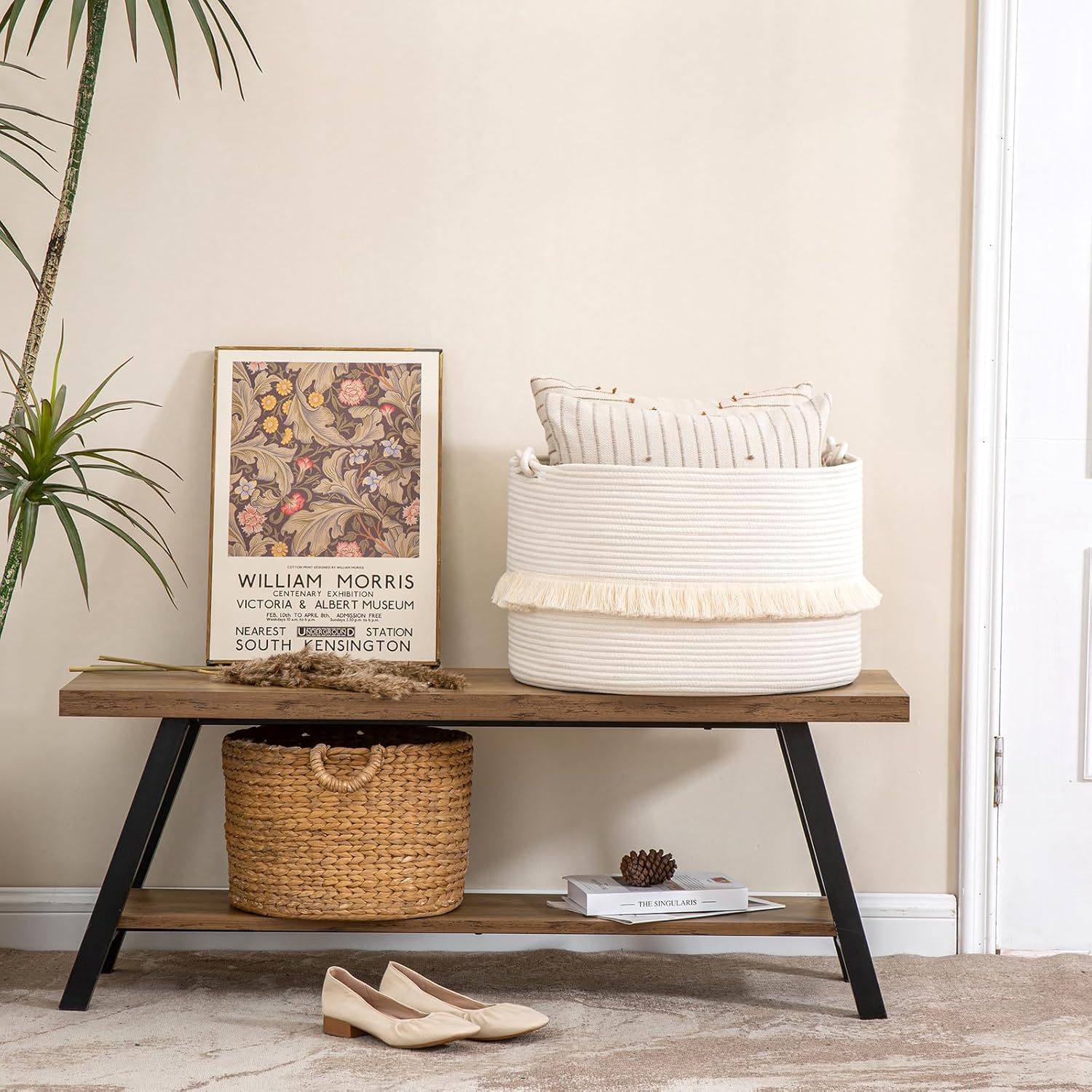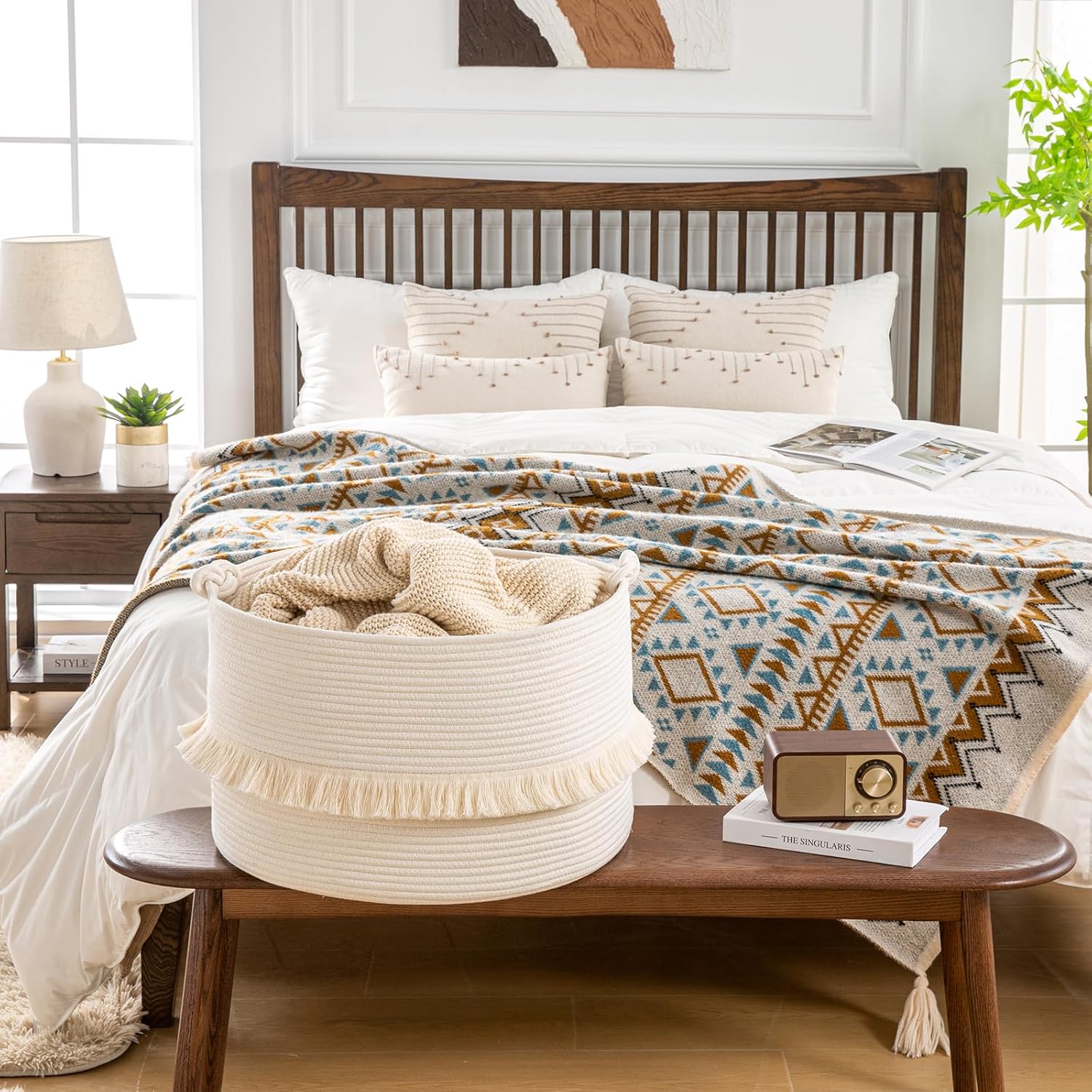 KAKAMAY Large Blanket Basket (20"x13"),Woven Baskets for storage Baby Laundry Hamper, Cotton Rope Blanket Basket for Living Room, Laundry, Nursery, Pillows, Baby Toy chest (White)