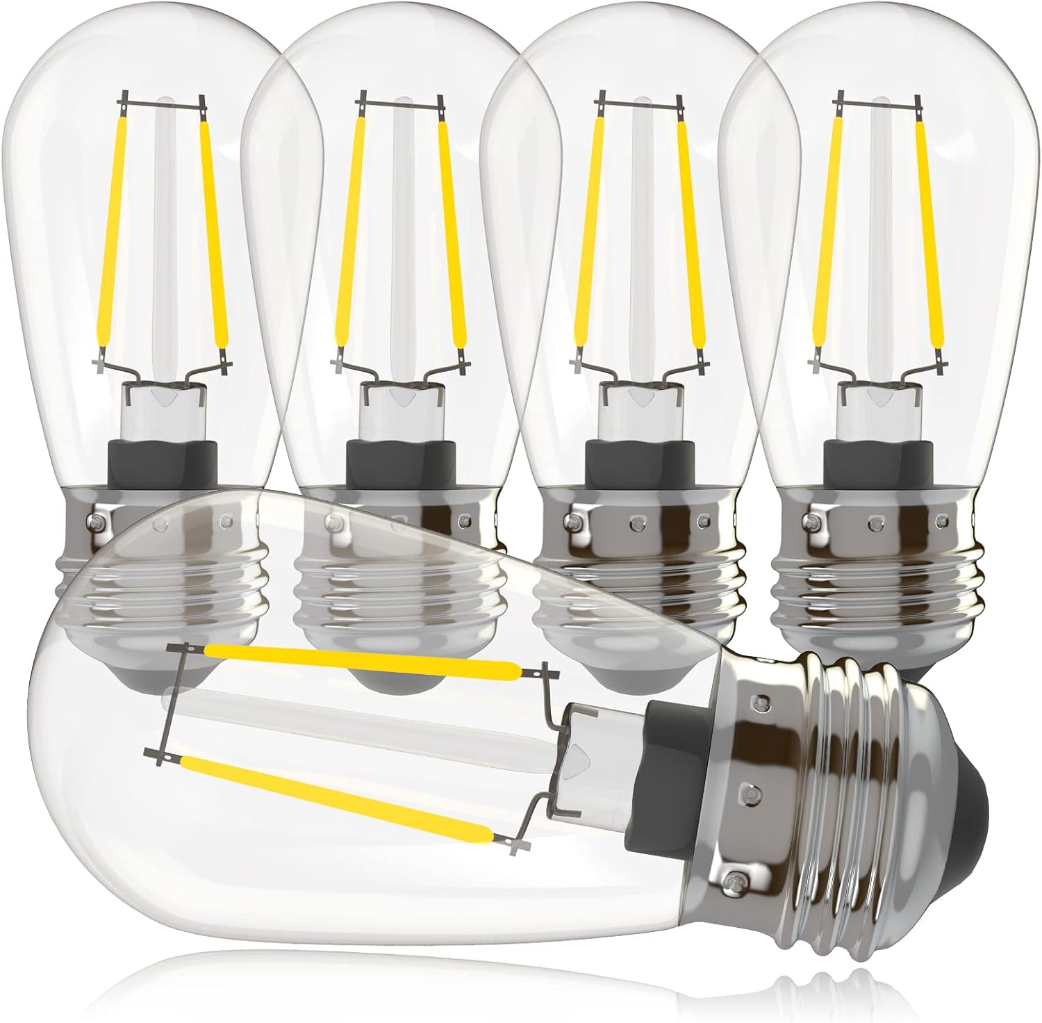 Banord 5 Pack Dimmable 2W S14 Replacement LED Bulbs, 2700K Warm White Waterproof Outdoor String Lights Vintage LED Filament Bulb, Shatterproof E26 Screw Base Edison Light Bulbs