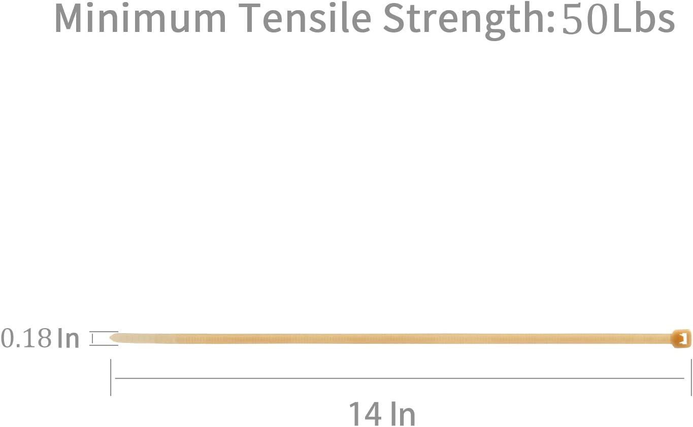 XINGO 100PCS Cable Zip Ties Heavy Duty, Premium Nylon Plastic Wire Ties with 50 Pounds Tensile Strength, Self-Locking Black Nylon Zip Ties for Indoor and Outdoor (14 inch, Gold)