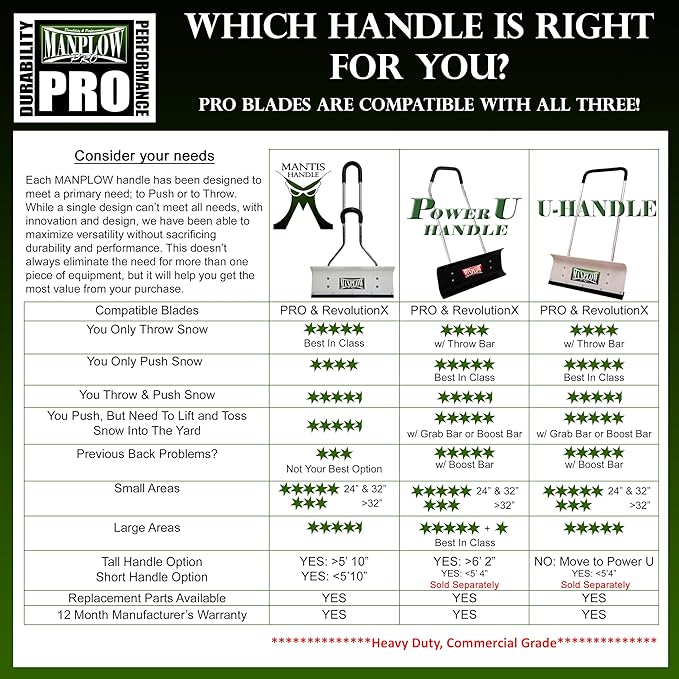 MANPLOW PRO Snow Pushers (PRO with Power U Handle Upgrade, 42")