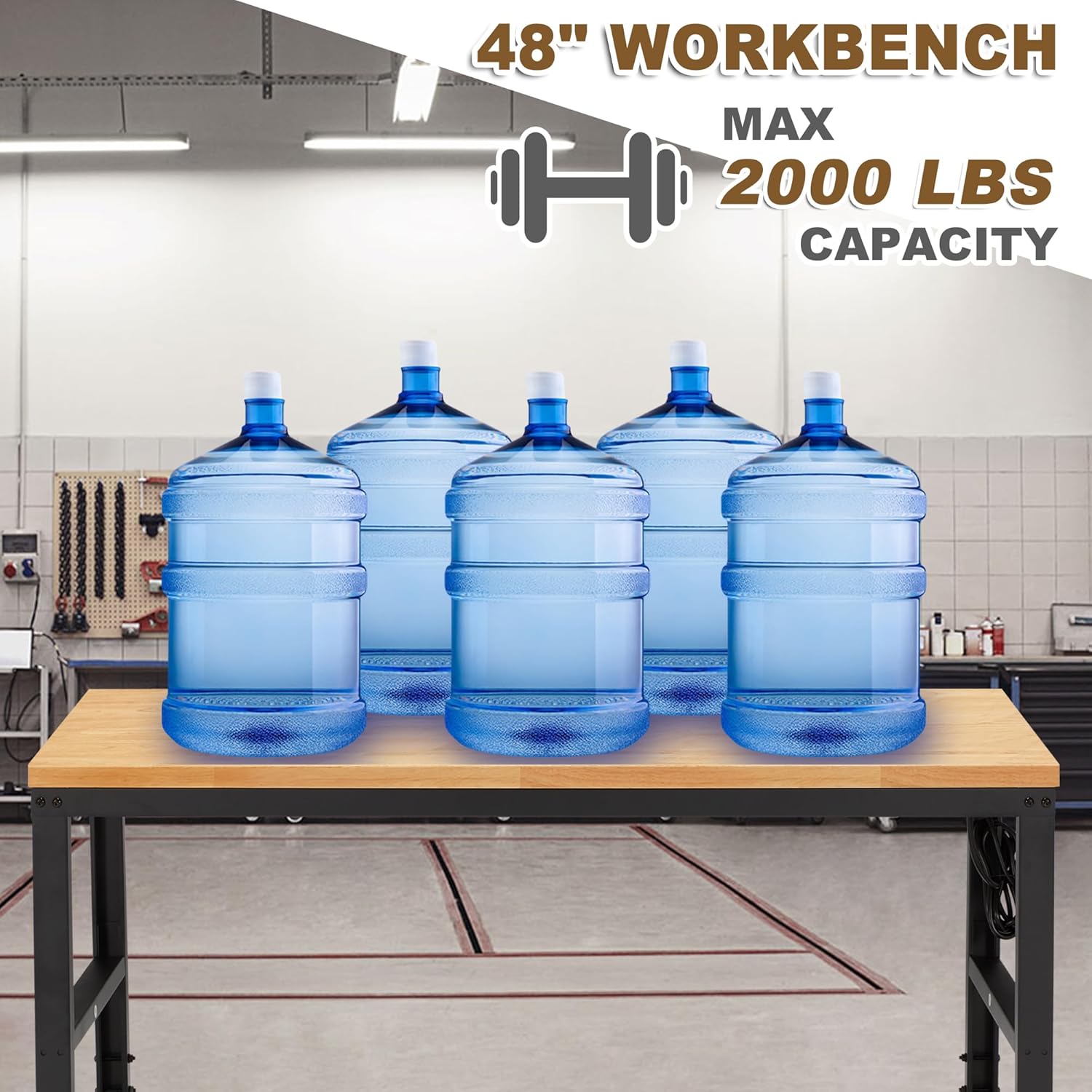 HABUTWAY Height Adjustable Workbench 48"x 24" 2000 Lbs Capacity Solid Wood Work Station Heavy-Duty Work Tables with Power Outlets for Garage Party Shop Office