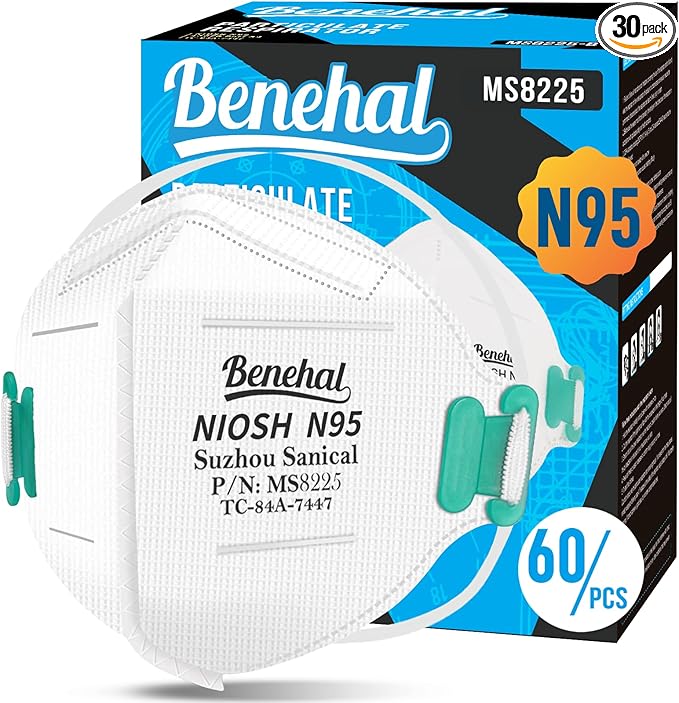 - NIOSH APPROVED N95 MASK RESPIRATOR - Approval Number: TC-84A-7447 - certified for at least 95% particulate filtration efficiency. Manufacturer: SUZHOU SANICAL PROTECTIVE PRODUCT MANUFACTURING CO., LTD.