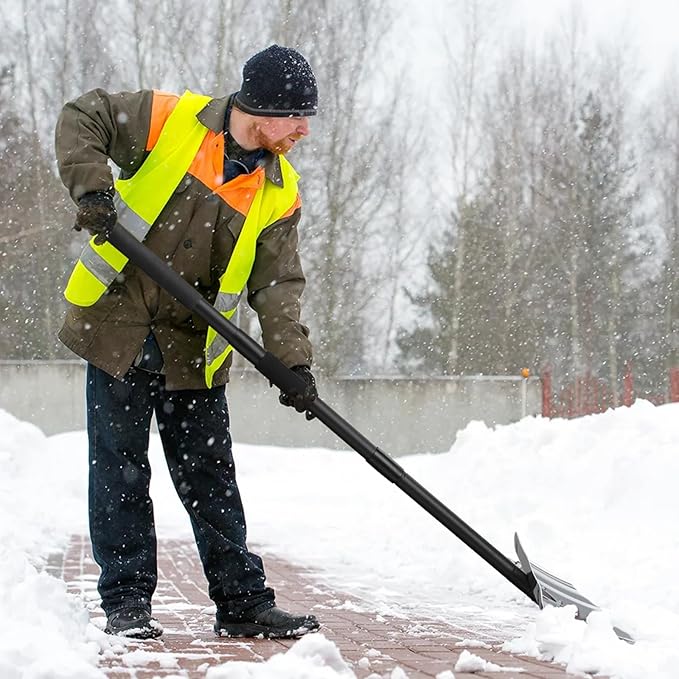 - Labor Saving Snow Shovel: Large D shape grip, 37” long steel handle, comfortable for gloved hands. Foam padded on the handle provides anti slip grasp without blisters