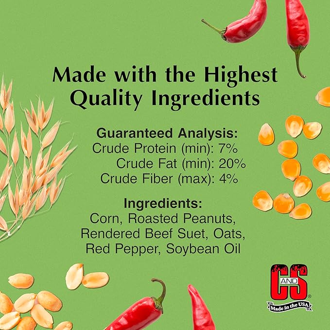 - HOT PEPPER NO MELT FORMULA is safe and enjoyable for birds to consume and won’t interest unwanted animals that visit bird feeders like squirrels, skunks, opossums, racoons, and more.