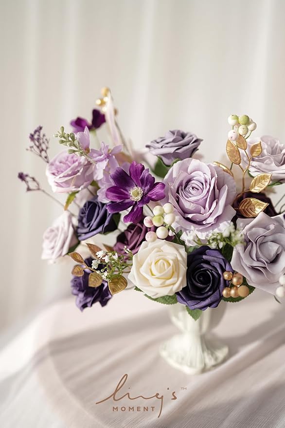 Ling's moment Artificial Flowers and Greenery for DIY Lilac & Cream Deluxe Box Wedding Bouquet Centerpieces Floral Arrangement Decor