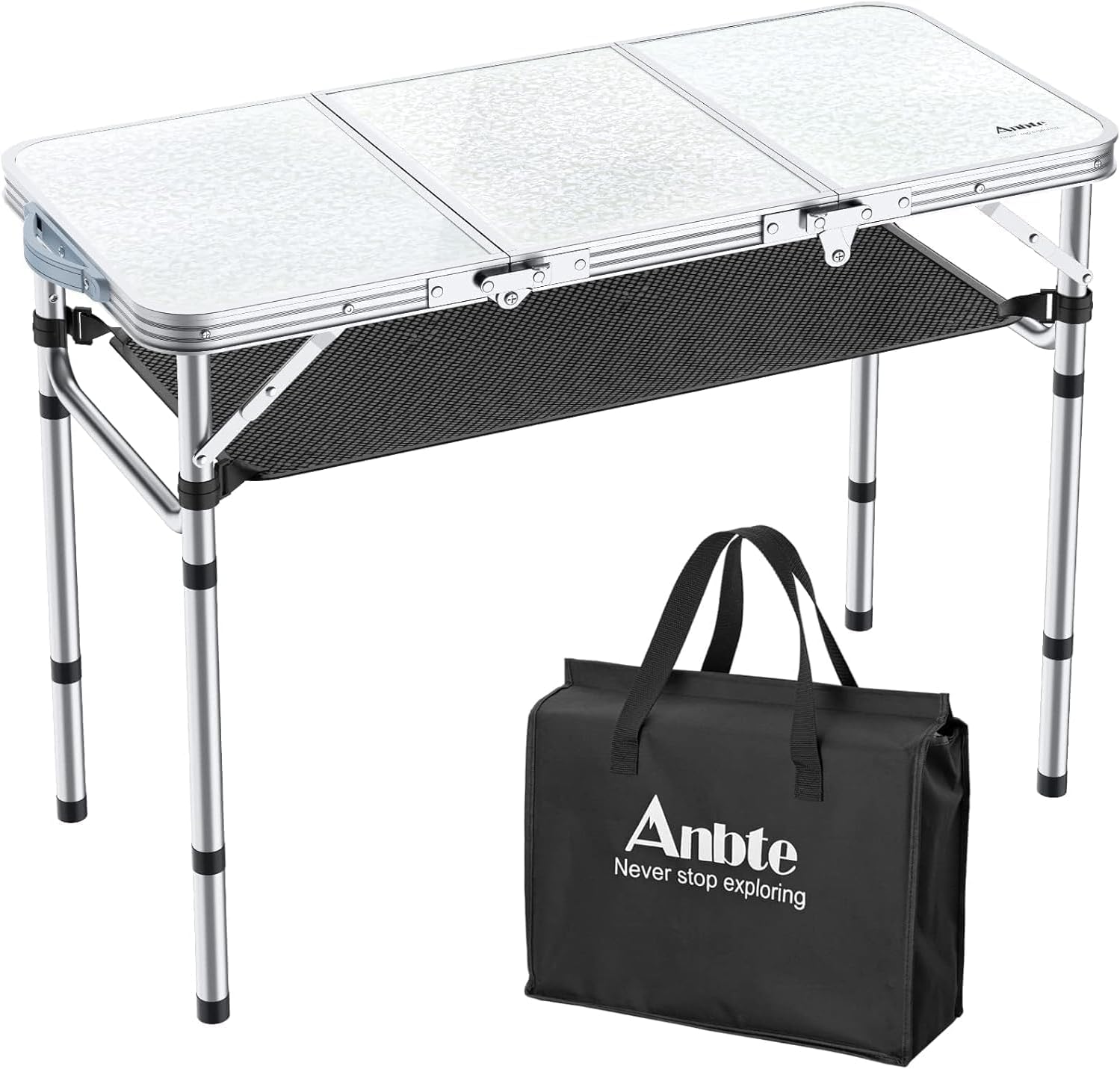 Folding Camping Table with Storage Net, 3ft Camping Table Aluminum Folding Table with 3 Adjustable Height Max 27.1 Inch, Portable, for Outdoor Backyard BBQ, Silver