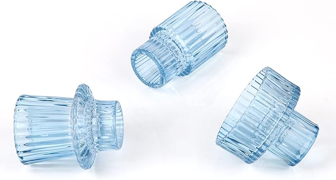 Vixdonos Glass Candlestick Holders Tealight Candle Holders for Table Centerpieces, Wedding Decor and Dinner Party (3 Pcs, Light Blue)