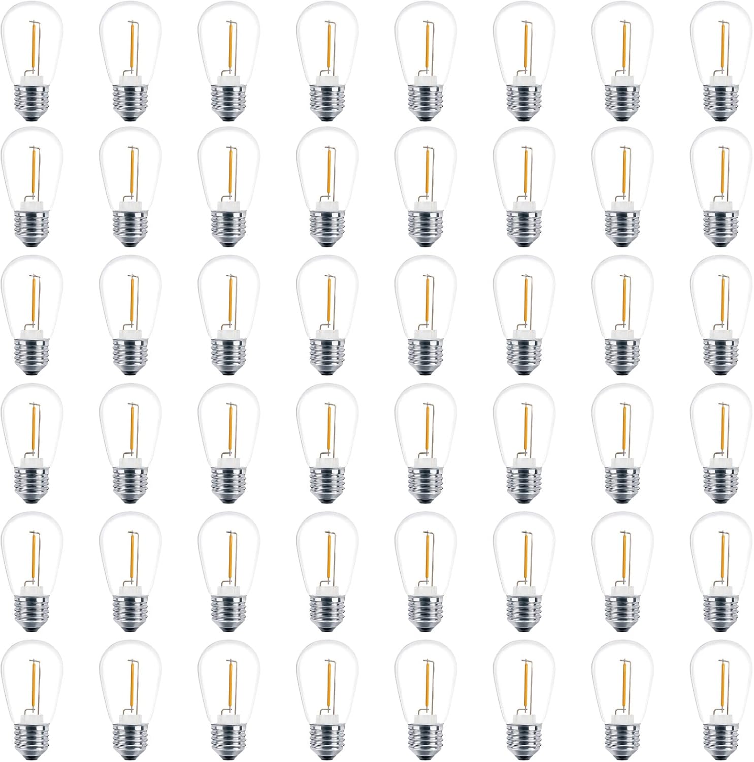 Meconard 48 Pack S14 LED String Light Bulbs, 1 Watt Shatterproof Replacement Bulbs for Patio Outdoor Sting Lights, E26 Medium Screw Base, Warm White 2200K, Non-Dimmable