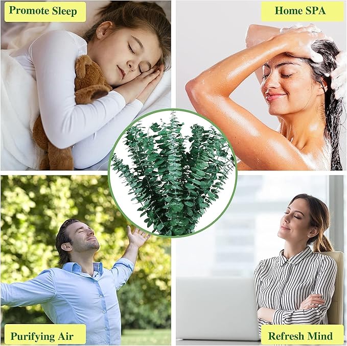 - Eucalyptus Fragrance: Eucalyptus has a distinctive mint-like fragrance that emanates when exposed to hot steam.This fragrance can restore vitality, relieve stress, help you sleep and relieve upper respiratory problems, purify air etc.