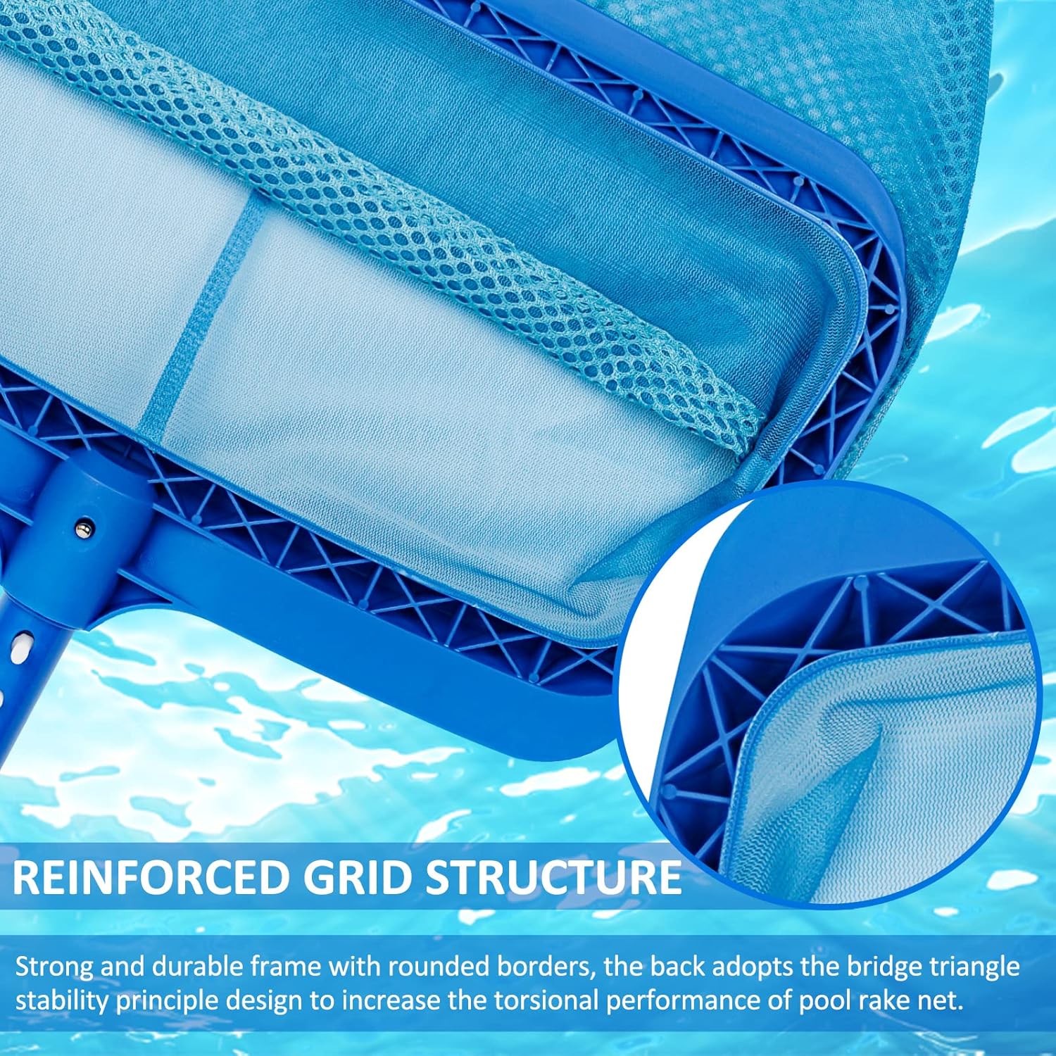 - Frame of leaf rake is made of ABS plastic, which is sturdy and lightweight, the curved border design will not scratch your pool's edge. Upgrade your pool cleaning with Poolvio above pool equipment