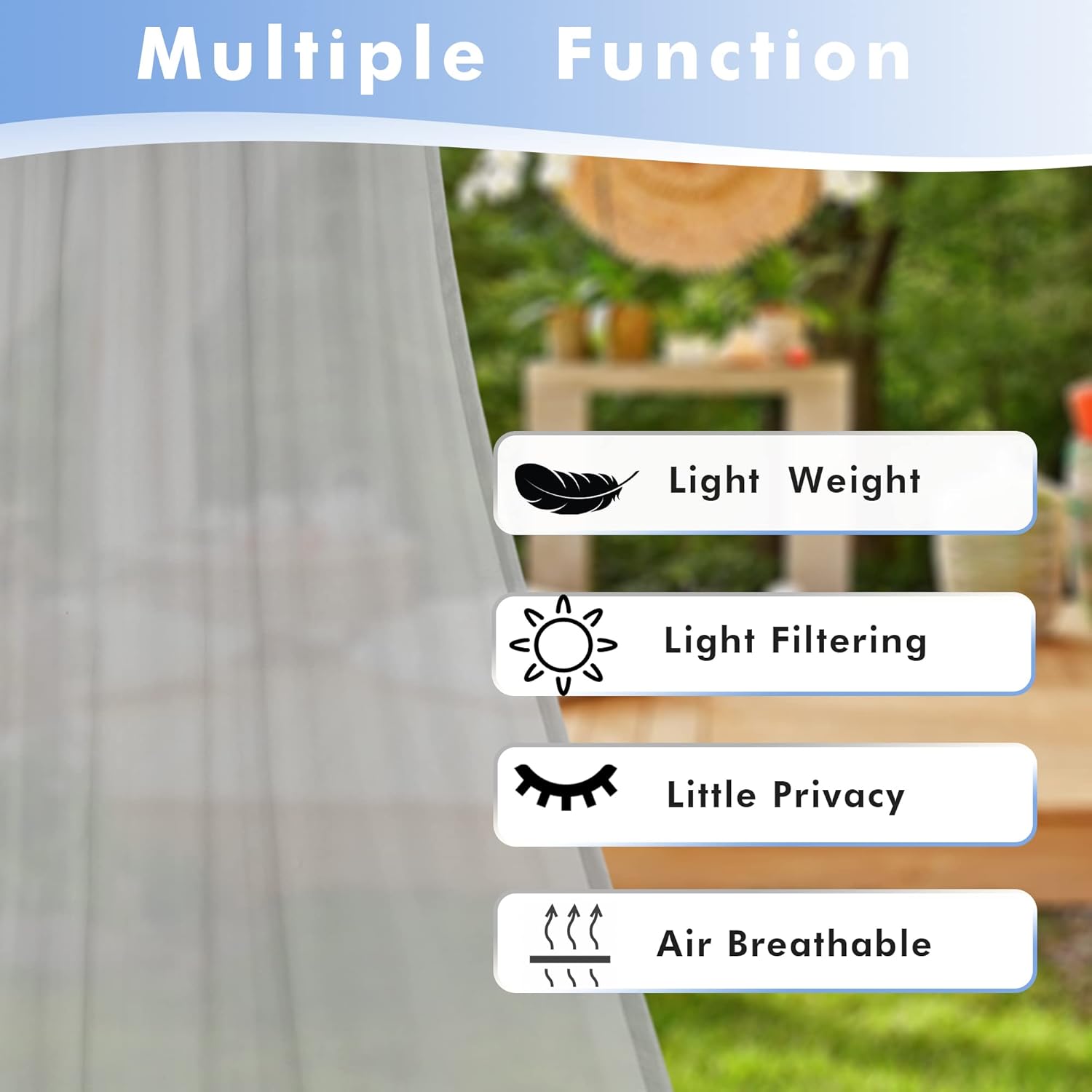 - Waterproof Polyester Fabric - Made with high quality polyester voile fabric that is waterproof and weather-resistant. These outside curtains are designed to provide long-lasting protection against strong sunlight, UV rays.