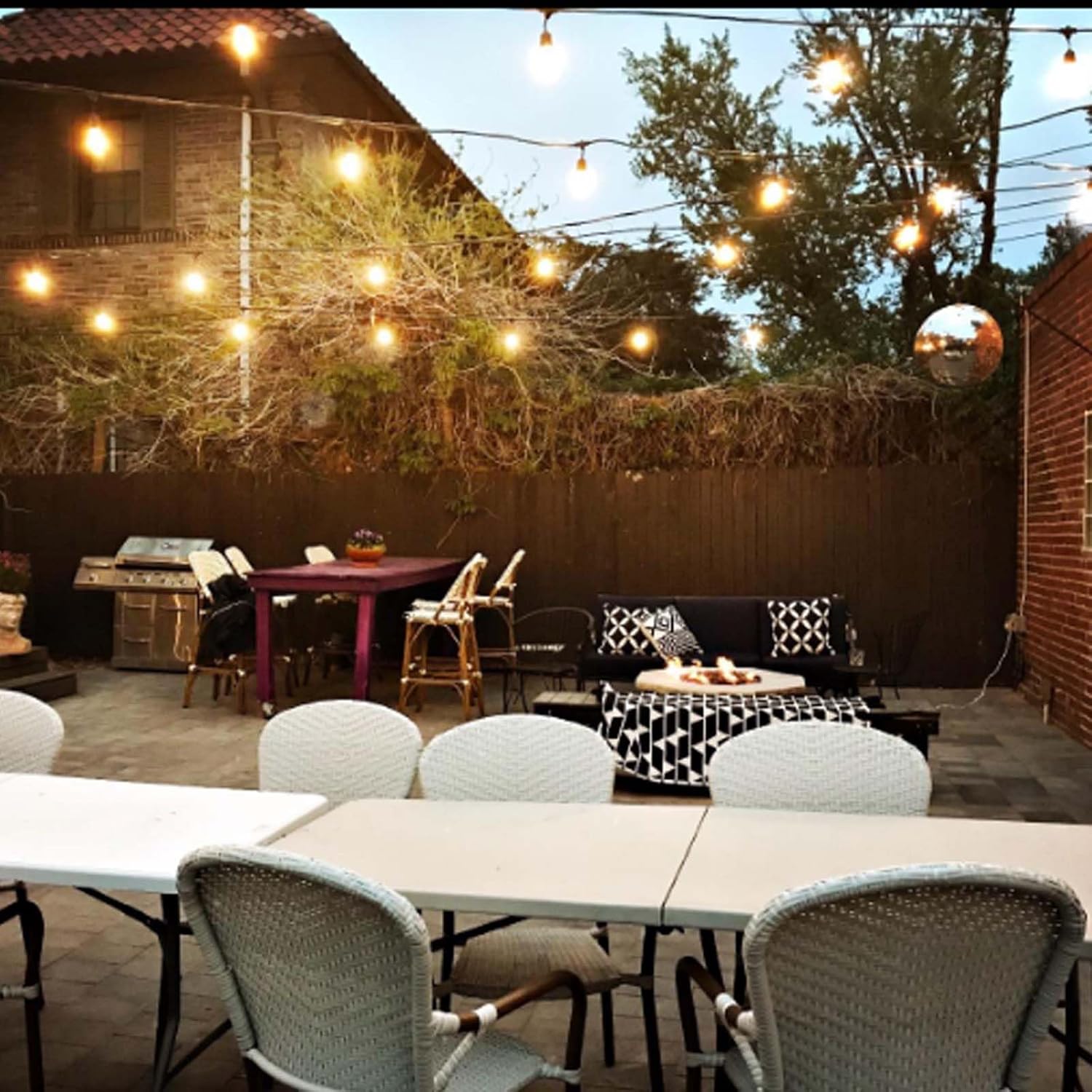 - 【Dimmable】Clear plastic bulbs provide a warm white glow. Dimmer compatible which would be perfect decoration lights for your garden, backyard and balcony