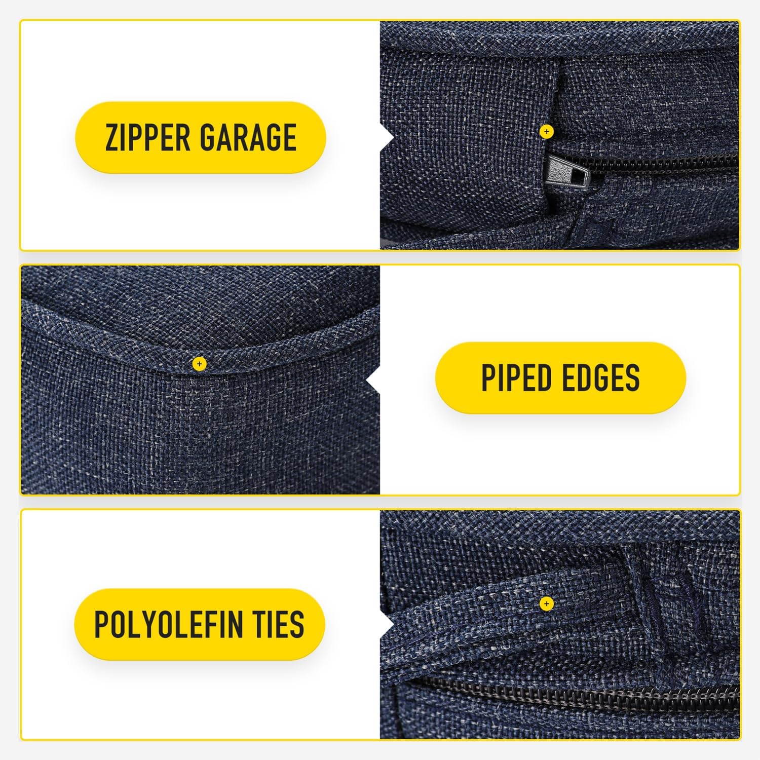 - 【Invisible Zipper Garage | Removable Cover with Ties】Zippers lock to keep a tight closure, stored in protective garages to prevent scratching your patio furniture when closed and offer a seamless look. Removable cover with non slip ties, customizable fit to keep your cushion where you want it.