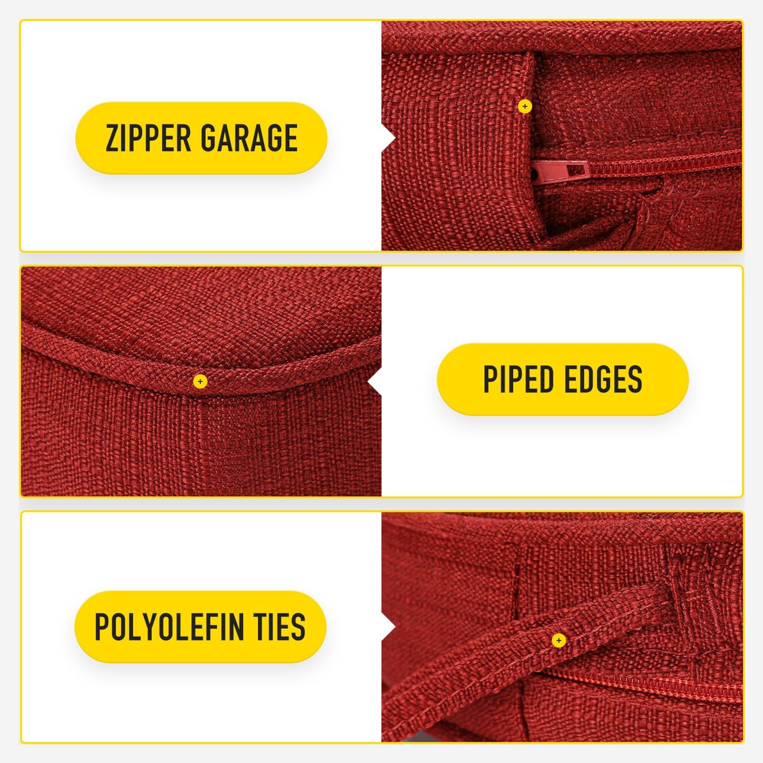 - 【Invisible Zipper Garage | Removable Cover with Ties】Zippers lock to keep a tight closure, stored in protective garages to prevent scratching your patio furniture when closed and offer a seamless look. Removable cover with non slip ties, customizable fit to keep your cushion where you want it.