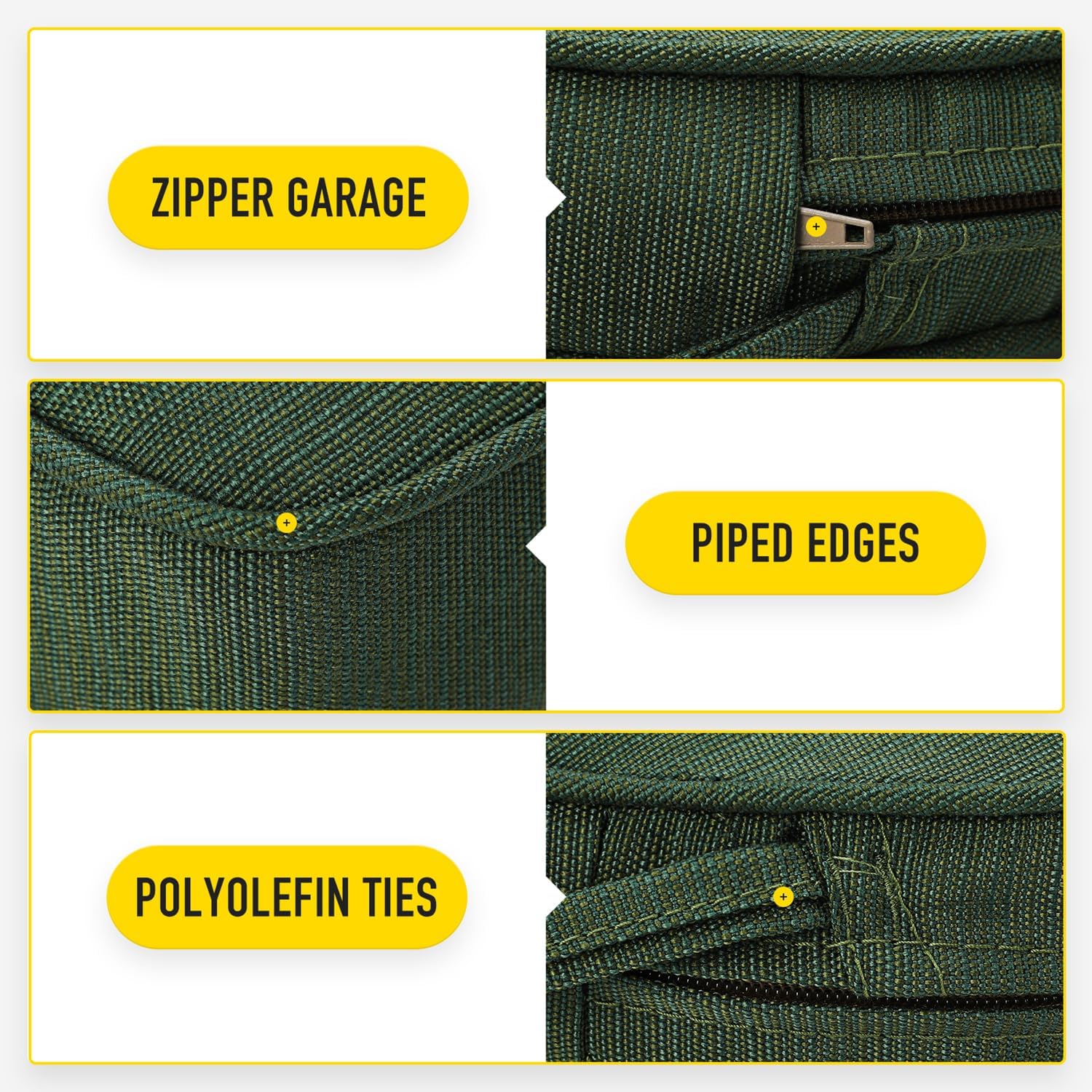 - 【Invisible Zipper Garage | Removable Cover with Ties】Zippers lock to keep a tight closure, stored in protective garages to prevent scratching your patio furniture when closed and offer a seamless look. Removable cover with non slip ties, customizable fit to keep your cushion where you want it.
