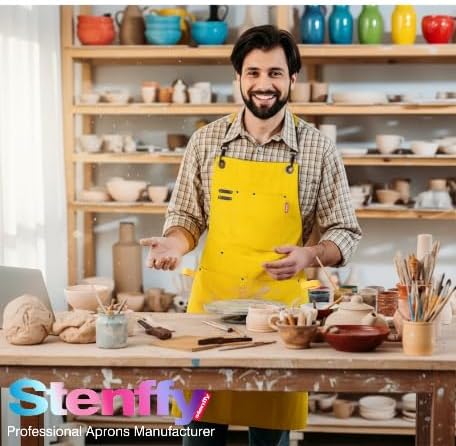 Kitchen Apron, Work Apron, Canvas, Multiple Pockets, Gardening, Painting, BBQ, Artist, Carpenter, Sizes M to XXL, Yellow