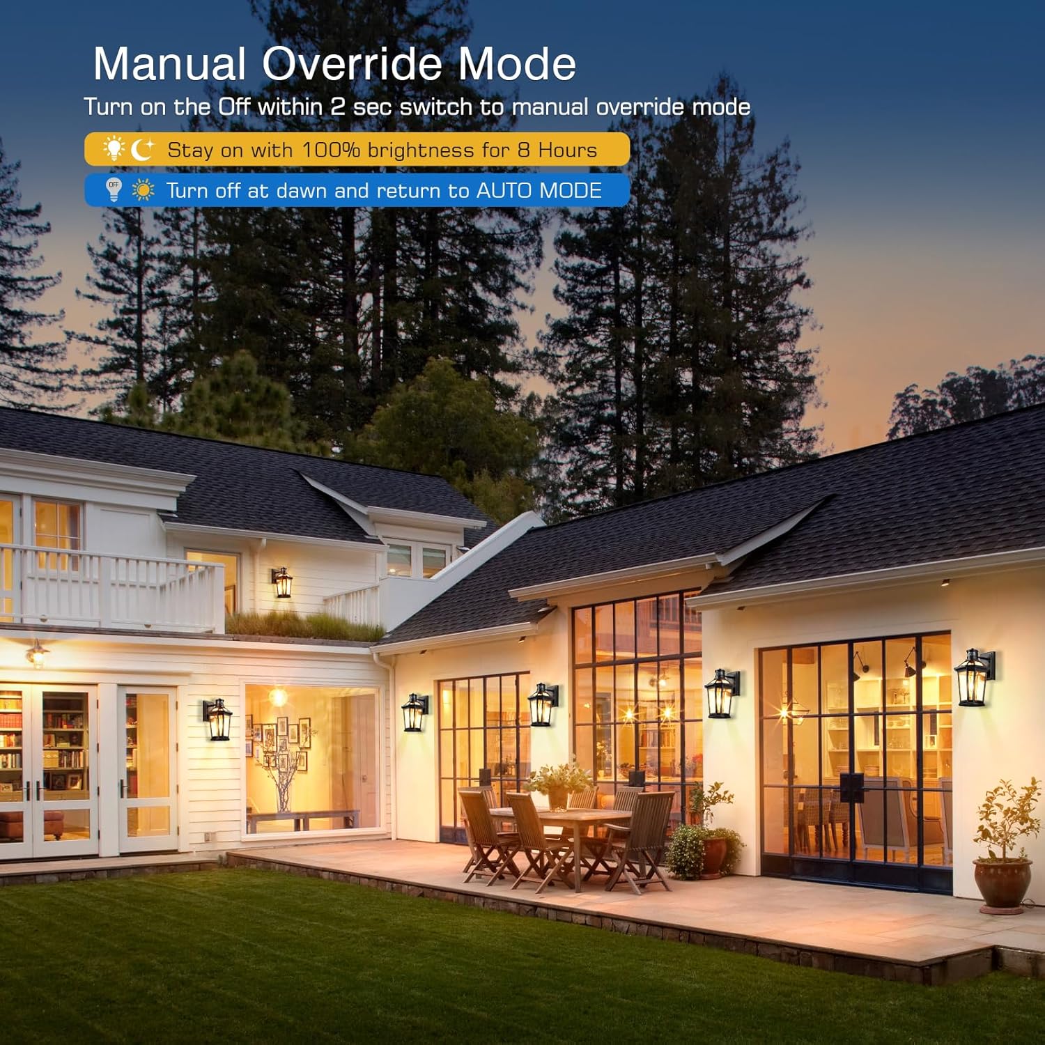 - 🌞 [ Latest Motion Sensor ] Our porch lights outdoor for your home now come equipped with a modern motion sensor that includes four working modes: ①DIM MODE: 100% brightness when motion is detected at night, 30% brightness the rest of time. ②ECO+ MODE: Keeps the lights off at night, turning on at full 100% brightness when motion is detected. ③D2D Mode: 100% brightness at night, turns off automatically at dawn. ④Override Mode: Maintains 100% brightness for approximately 8 hours, but automatically turns off at dawn and reverts to the previous operating mode.