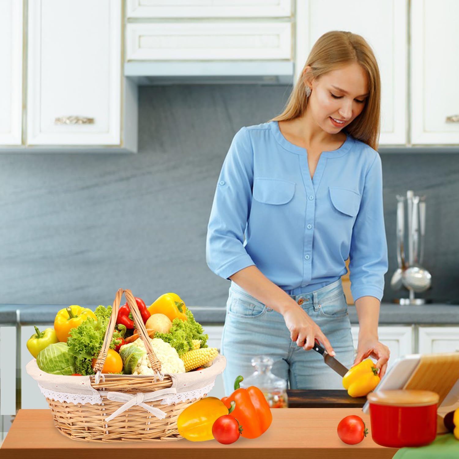 - 【Lightweight and Portable】These Wicker Woven Basket come equipped with convenient double drop-down handles, providing ease and comfort for transporting them to any event. Their lightweight and portable design make them ideal for a variety of occasions, including picnics, weddings, parties, and more. Their sturdy construction ensures your items are kept secure during transport, while their stylish and versatile appearance makes them perfect for any setting.