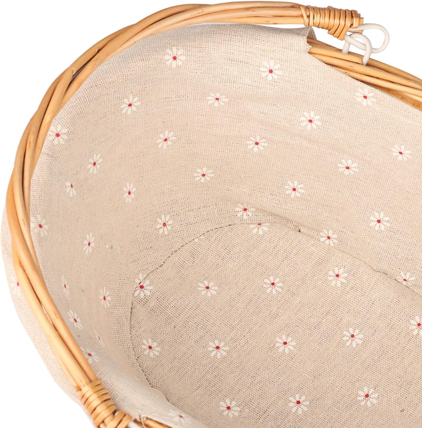 2 Pack Medium Size Wicker Basket with Handle, 12.6x9x4.7 inch Wicker Picnic Basket with Liner, Empty Gift Basket, Oval Willow Woven Basket for Fruit, Candy, Gathering, Wedding, Picnic, by,GNIEMCKIN