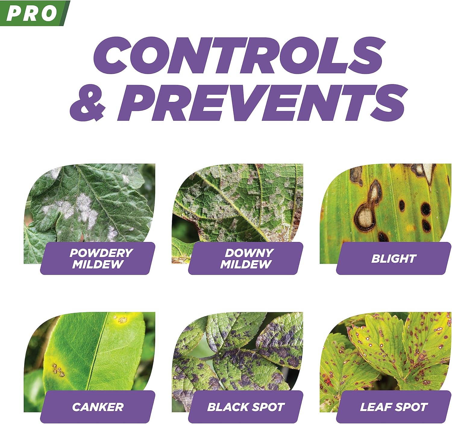 - CONTROLS AND PREVENTS DISEASE – Controls common plant disease including powdery mildew, downy mildew, blight, canker, black spot and leaf spot.